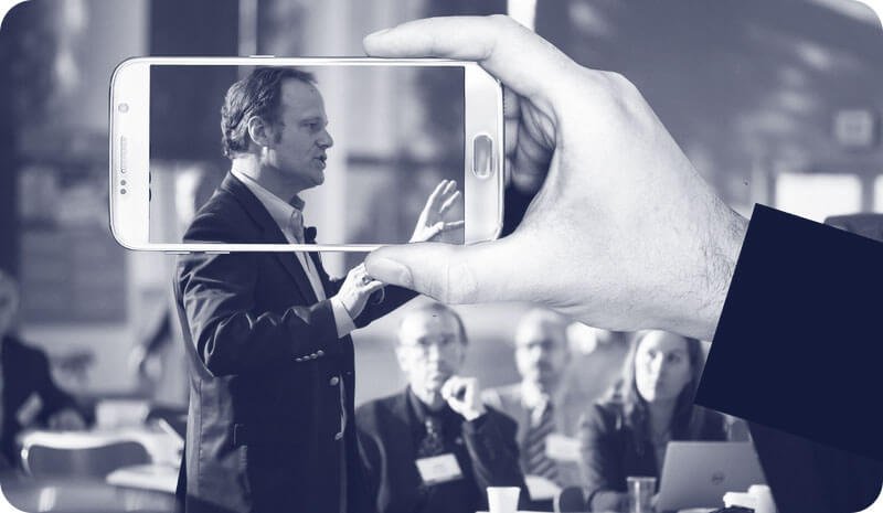 Você tem a opção de transmitir conferências ou eventos ao vivo para toda a empresa, usando somente o celular conectado à Internet.